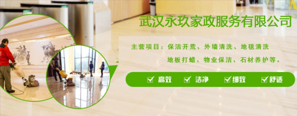 武漢永玖家政服務有限公司位于武漢市東西湖區徑河街道,是一家專業大理石翻新,石材翻新護理水磨石翻新,水泥地面打磨,地板打蠟,瓷磚美縫等相關業務的公司。主營項目:保潔開荒、外墻清洗、地毯清洗、地板打蠟、物業保潔、石材養護等。我公司從事石材行業多年,擁有一支專業的施工隊伍,依靠過硬的施工質量、科學的施工管理,獲得業界的良好贊譽!一直以來公司秉承著誠信、創新、人本、和諧的核心價值觀,與時俱進。在健康環保可持續發展的經營理念,不參與惡性的市場競爭,用品質與口碑贏得市場,用真誠與服務感動客戶。為客戶、為員工、為社會創造價值,是我們矢志不渝的追求。產品的質量是企業的生命,售后服務是保證質量的持續性,公司擁有一支經驗豐富、技術精湛的售后服務隊伍。用戶所需要的,正是我們全力打造的,用戶滿意的正是我們追求的,多年來不斷創新,超越自我,始終堅信發展才是硬道理的精神,以品質打造品牌,以服務提升品牌。