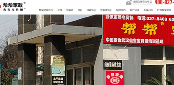 武漢市幫幫家政服務有限公司1999年成立。專業從事月嫂、育嬰師、保姆就業一條龍服務。漢陽總部:漢陽區鐘家村閩東國際城51101室,漢口分部:香港路90號農行大廈6-506室,武昌分部:中南路中建廣場C27J.公司自購及租賃 8 套商住樓房,共計 1200 平米,其中“中國家協武漢鑫寶寶月嫂培訓基地”占 600 平米。團隊行管人員50人,家政服務員10000人。注冊資金 100 萬,工商注冊號:420104000005998,總投資 1000 萬。2012年度武漢市人民政府認定“幫幫”為武漢市著名商標。品牌價值人民幣 1 個億。